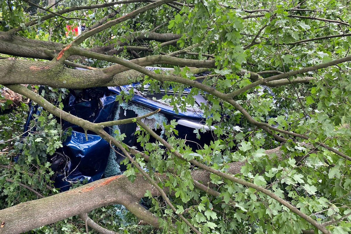 Dinslaken – Person im Auto unter Baum eingeklemmt