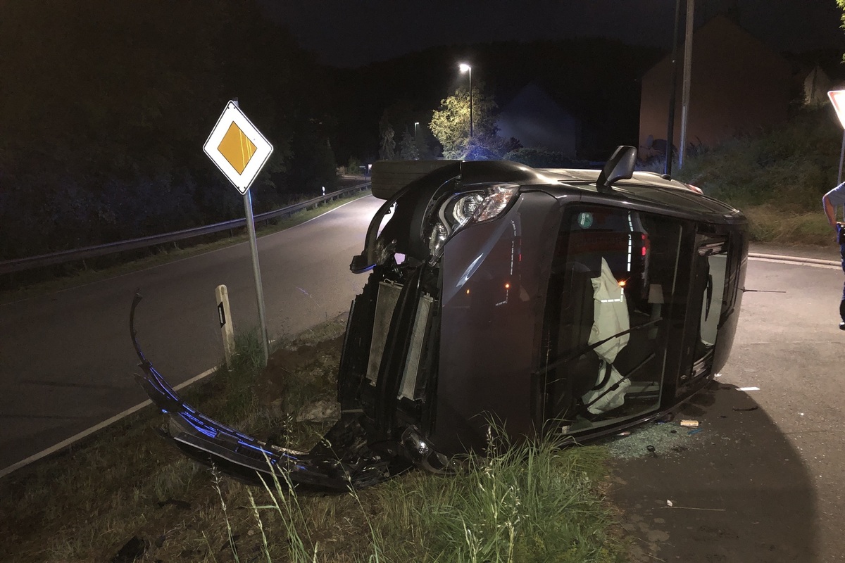 Auf der Seite liegend zum Stillstand gekommen (Bildquelle: Polizeidirektion Wittlich)