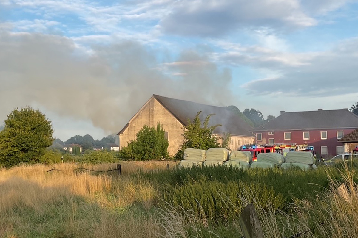 Am Donnerstagabend, 24.Juli 2025, ist in Dortmund-Scharnhorst eine leerstehende Scheune in Brand geraten. Rundballen brannten, Rauch zog in ein angrenzendes Wohngebiet. Die Feuerwehr war mit rund 60 Kräften im Einsatz.