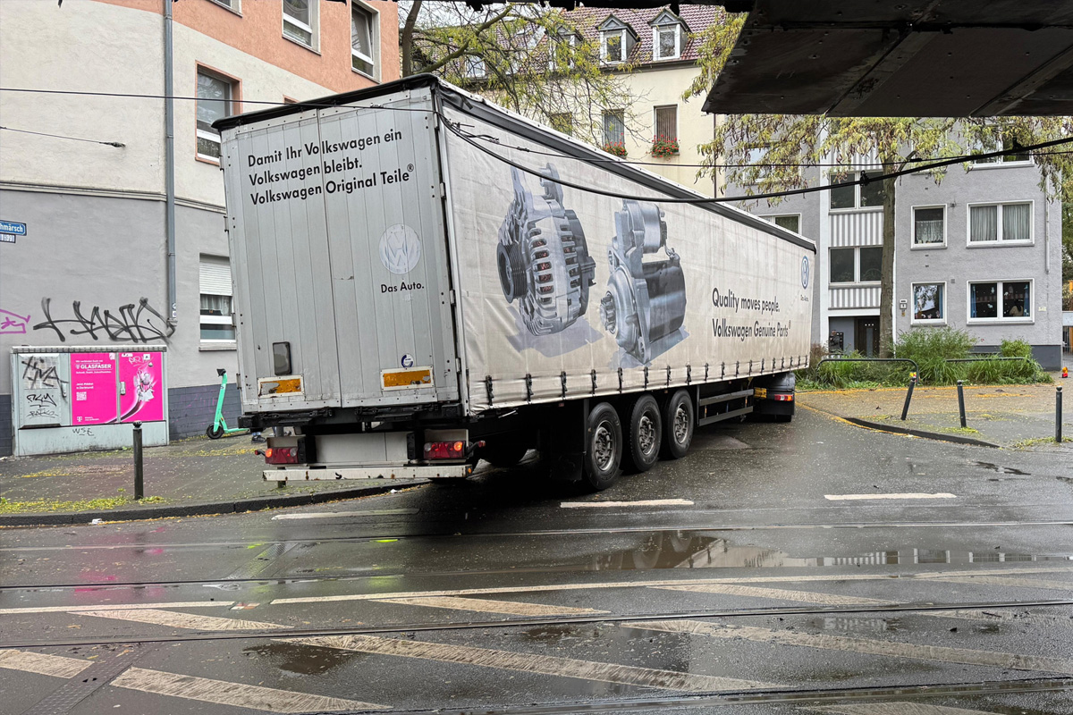 Am Dienstagmorgen, 21.10.2025, blieb in Dortmund (NW) ein Lkw bei Rangierarbeiten in der Oberleitung der Stadtbahn hängen. Der Unfall führte zu erheblichen Verkehrsbehinderungen und einer Sperrung des Bahnverkehrs im Bereich Oestermärsch/Bleichmärsch.