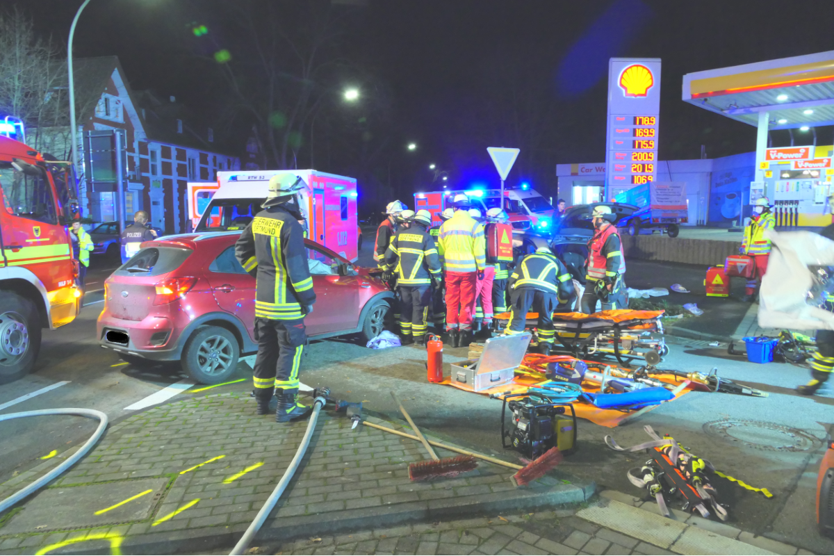 Der zuerst an der Einsatzstelle eintreffende Rettungswagen meldete mehrere Verletzte und eine im Fahrzeug eingeschlossene Person. Daraufhin wurden weitere Rettungsmittel zu der Unfallstelle entsandt.