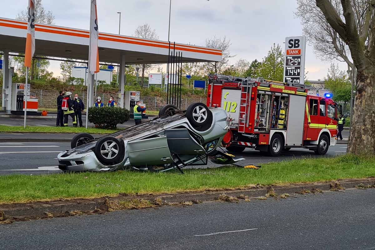 Aus bisher noch ungeklärter Ursache kam es gestern gegen 18:50 Uhr auf der Borussiastraße in Oespel auf Höhe der SB-Tankstelle zu einem Verkehrsunfall zwischen zwei Fahrzeugen. Im Verlauf des Unfallgeschehens hatte sich die Limousine einer vierköpfigen Familie überschlagen und war auf dem Dach liegen geblieben.