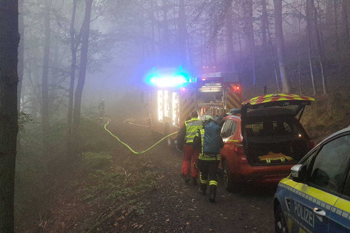 Die Feuerwehr konnte die Einsatzkräfte nach einiger Zeit reduzieren. Der Löschzug Ittenbach unterstützte das Bestattungsunternehmen bei der Bergung in steiler Hanglage. Dabei kam eine Schleifkorbtrage und der Gerätesatz Absturzsicherung zum Einsatz. Diese Maßnahmen wurden gegen 13 Uhr abgeschlossen und die Einsatzstelle an die BFU übergeben.