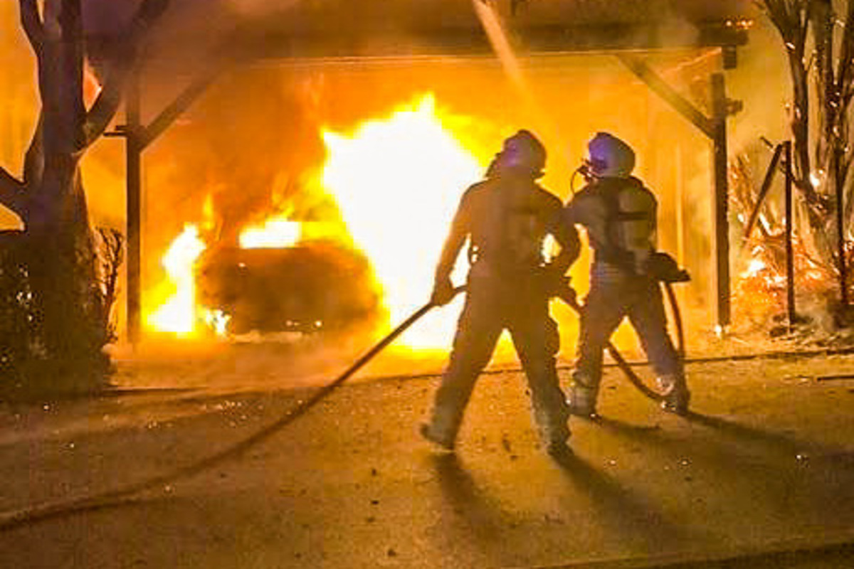 Heute, 23.05.2023, wurde die Feuerwehr zu einem Fahrzeugbrand in einem Carport gerufen. Vor Ort stellten die Feuerwehrleute fest, dass die Flammen bereits auf zwei Bäume übergegangen sind. Die Brände konnten jedoch erfolgreich gelöscht werden. Das Fahrzeug brannte vollständig aus.