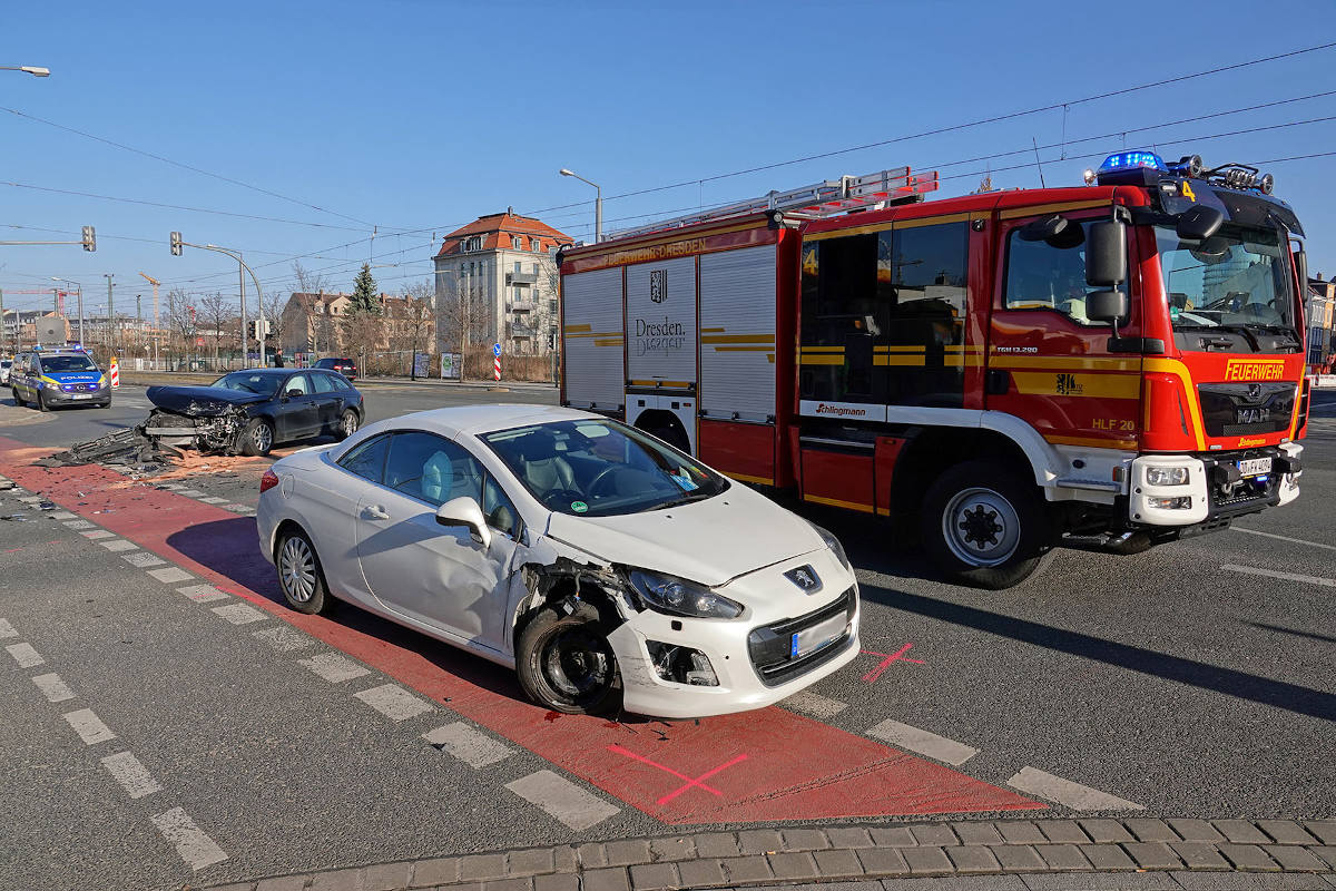 Verkehrsunfall mit zwei PKW in Dresden (Bildquelle: Feuerwehr Dresden)