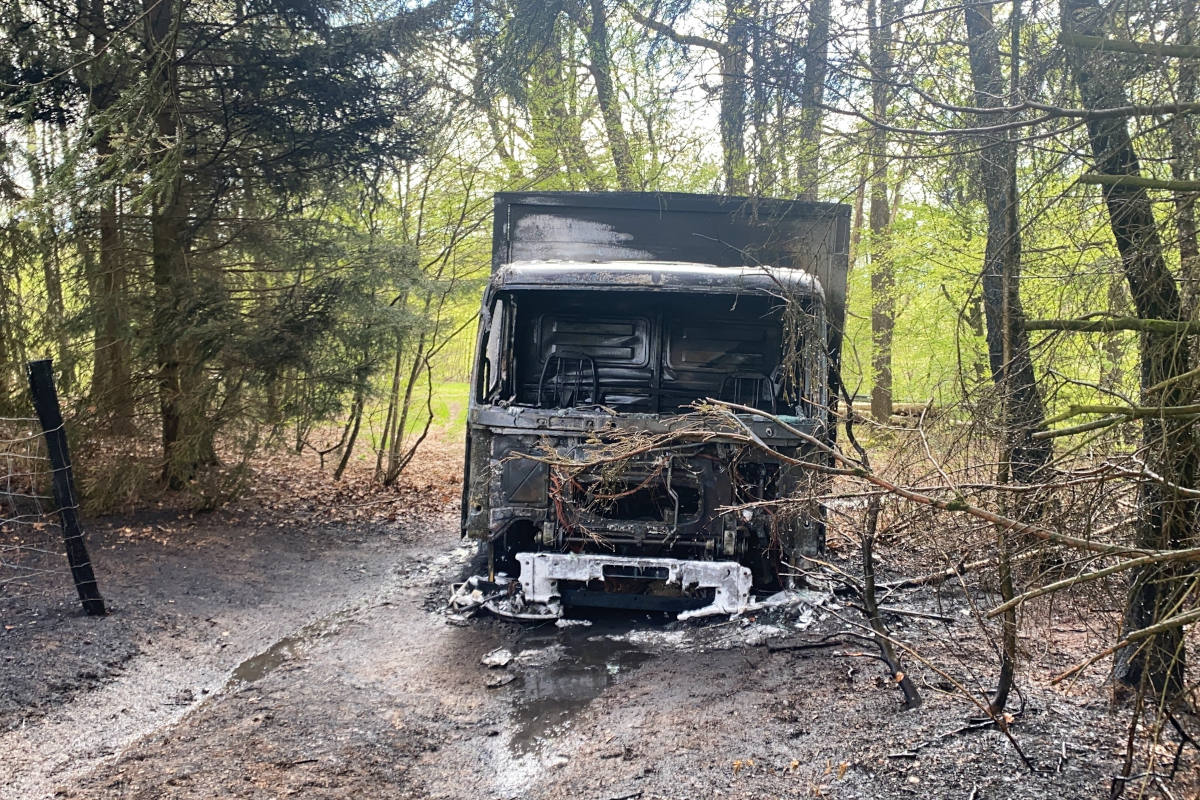 Am Montagmorgen (10. Mai) ist gegen 10.20 Uhr der Polizei ein brennender Lkw auf einem Waldweg in der "Breitehard" in Richtung Sportplatz gemeldet worden.