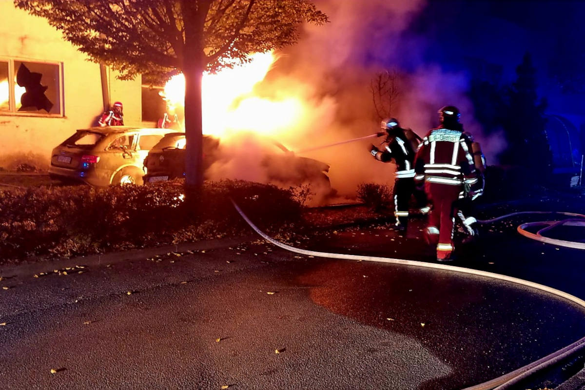 Düren – Fahrzeugbrand droht auf Gebäude überzugreifen