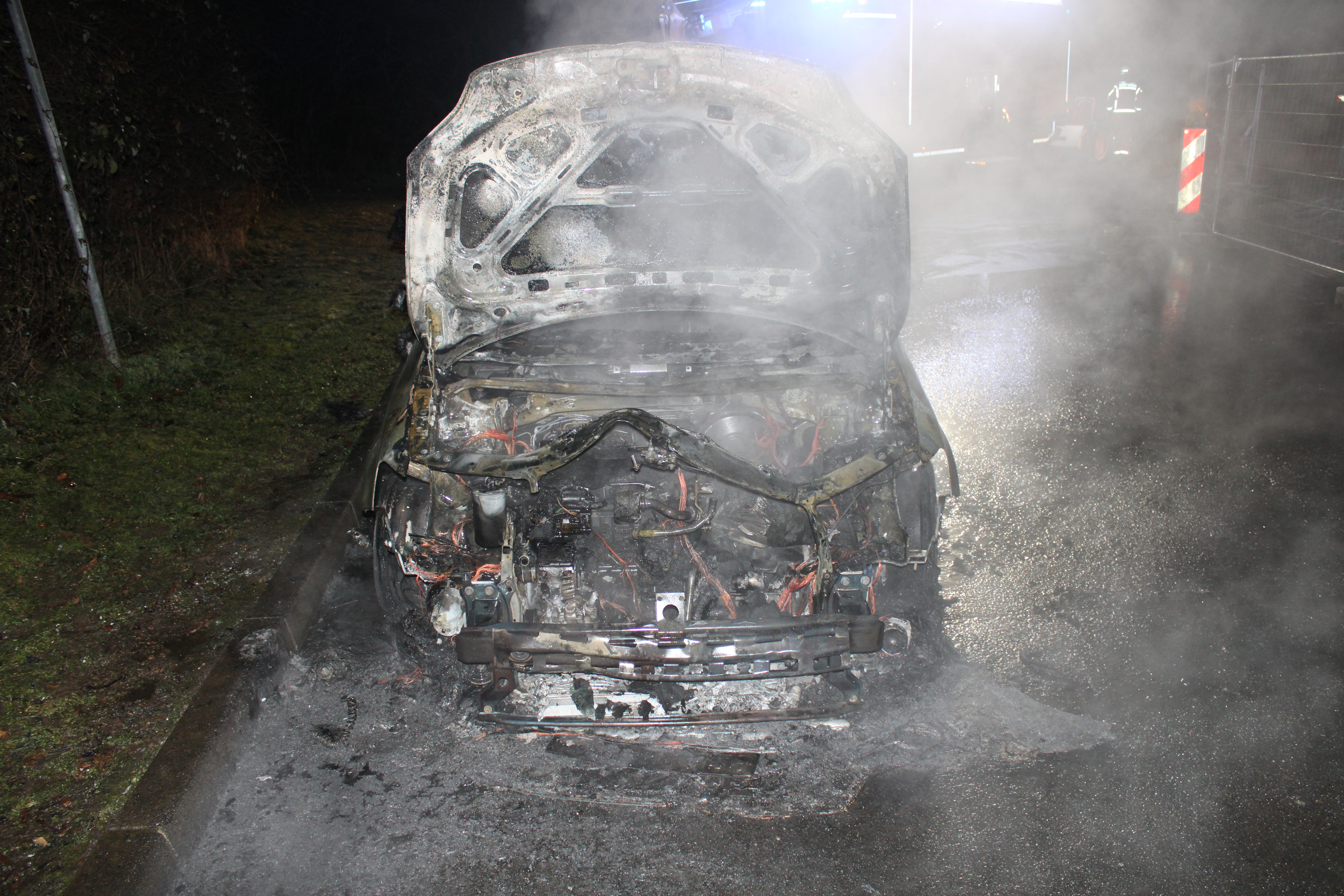Am Donnerstagabend (15.12.2022) wurden Beamte der Polizei Düren zu einem Pkw auf der Nippesstraße gerufen. Der Pkw brannte im Frontbereich komplett aus.
