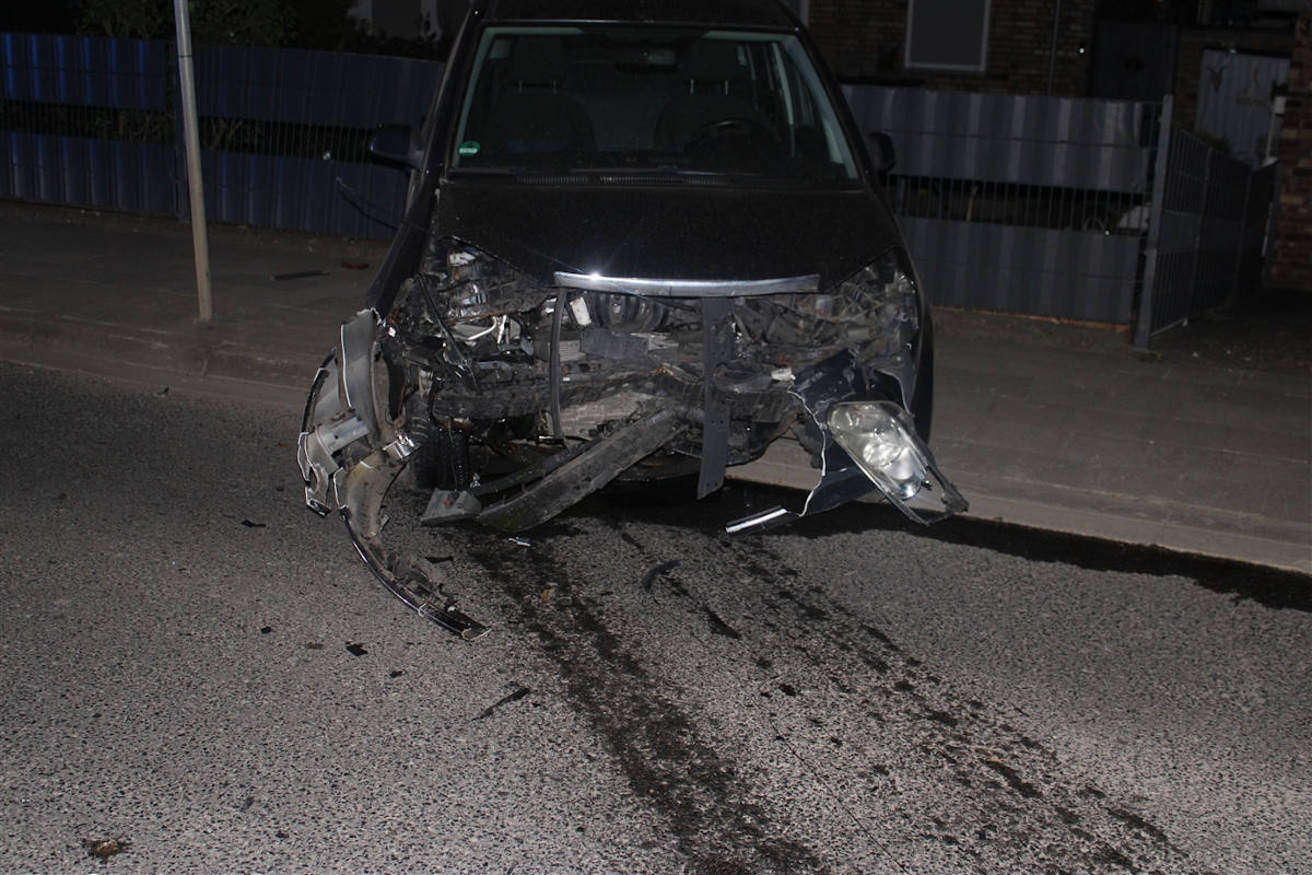 Vor Ort bot sich den aufnehmenden Beamten ein Bild mit zwei total beschädigten Pkw auf den Gehwegen stehend, einem zerstörten Zaun und einem riesigen Splitterfeld. Am Pkw des Melders waren die Airbags ausgelöst worden, alle Türen und Kofferraumklappe standen offen.
