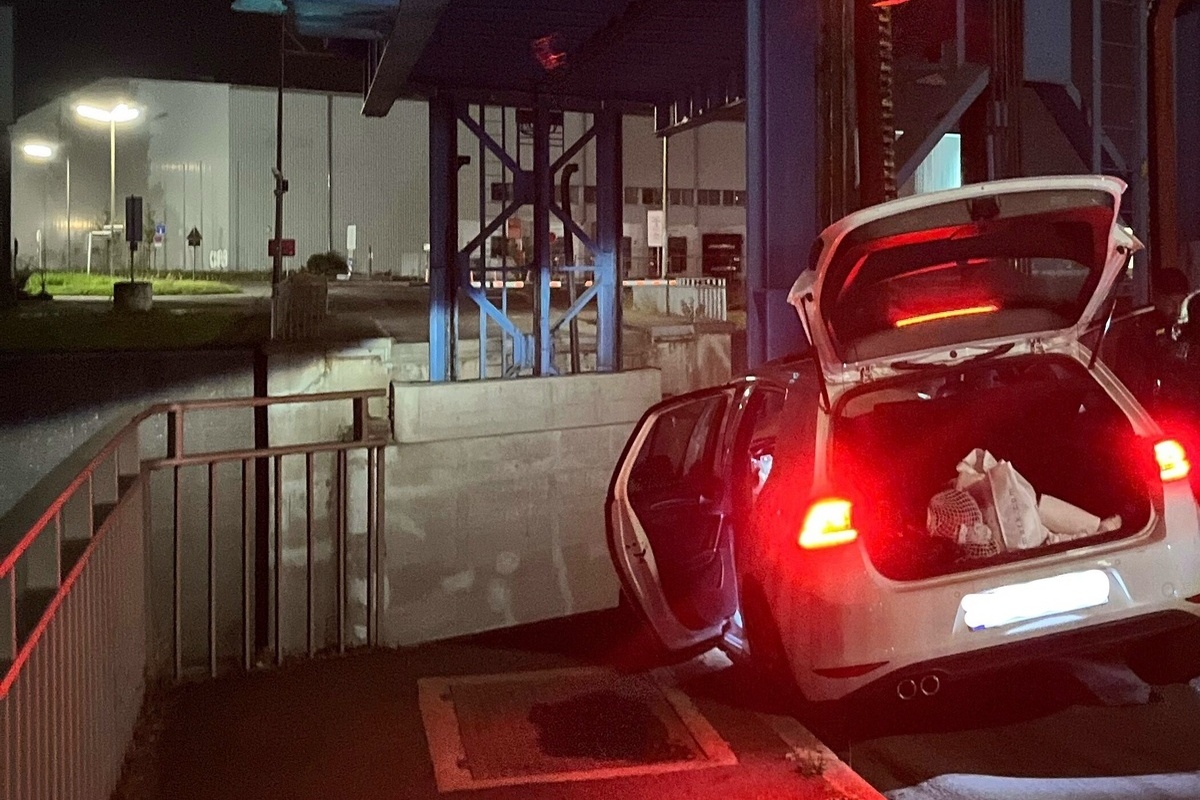Nachdem die Beamten das Fahrzeug kurz aus den Augen verloren hatten, konnten sie es auf der Hamburger Straße verunfallt wiederentdecken. Eine hochgefahrene Hubbrücke schien die Flucht beendet zu haben, der Golf kollidierte mit einem dortigen Pfeiler.