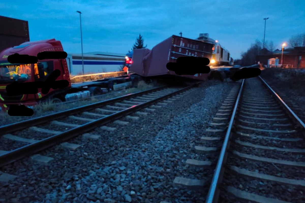 Ein Güterzug hat in Duisburg heute einen Lkw erfasst. (Bildquelle: Polizei Duisburg)