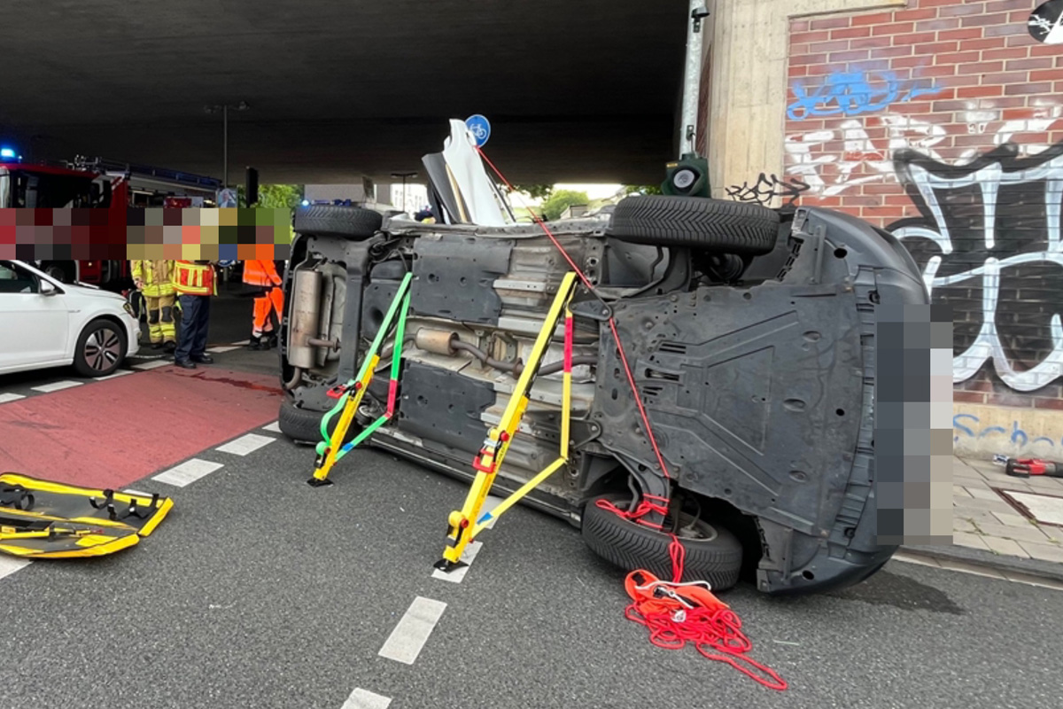 Duisburg NW – Auto kippt nach Kreuzungsunfall auf die Seite