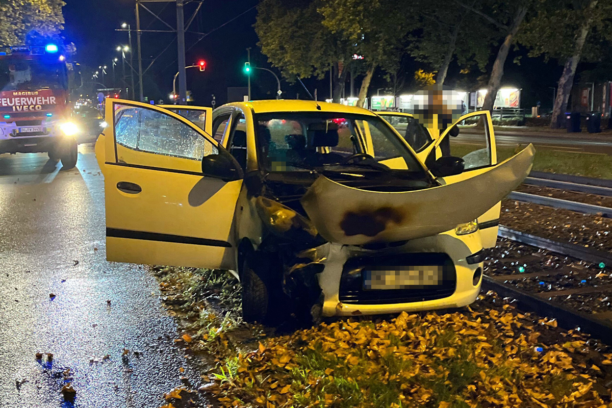 Ein 44-jähriger Autofahrer ist am Freitagabend (05.09.2025) in Duisburg-Alt-Hamborn ins Gleisbett der Straßenbahn geraten. Er versuchte noch, seinen Wagen zurück auf die Fahrbahn zu steuern, doch schließlich fing der Motorraum Feuer. Ein Atemalkoholtest fiel positiv aus, der Führerschein wurde eingezogen.