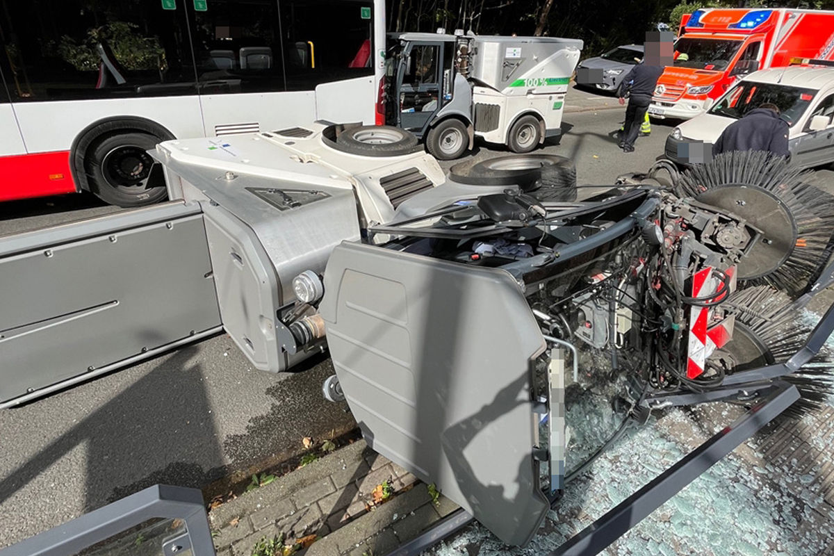 Der Fahrer einer Kehrmaschine wurde verletzt. (Bildquelle: Polizei Duisburg)