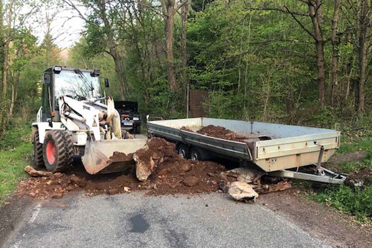 Im Bereich der Villa Medica geriet gestern dessen Anhänger, der mit Bauschutt beladen war, ins Schlingern.