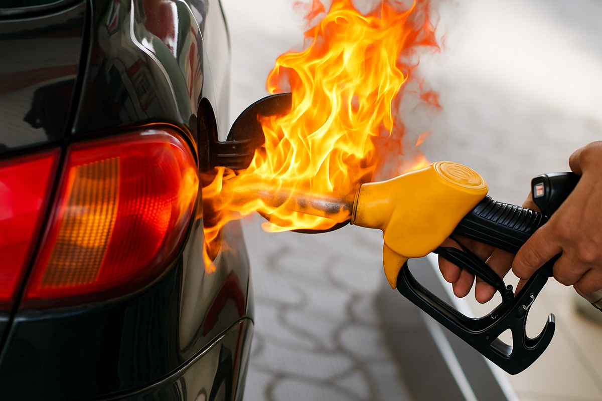 Reflexartig zog der 18-Jährige die Zapfpistole aus seinem Fahrzeug, wodurch auch das austretende Benzin Feuer fing.