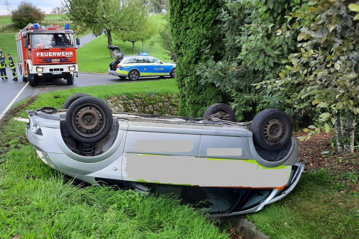 Feuerwehr Einsatz wegen auf Dach liegendem PKW (Bildquelle: Freiwillige Feuerwehr Eigeltingen)