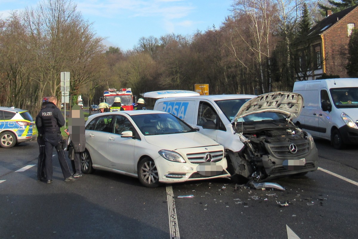 Gegen 12:20 Uhr fuhr eine 82-jährige Erkratherin gemeinsam mit ihrem Mann in ihrem Mercedes über die Straße "Kemperdick" in Richtung Hilden. Als sie auf Höhe der alten Hildener Straße ihr Fahrzeug wenden wollte, missachtete sie nach dem derzeitigen Stand der Erkenntnisse einen vorfahrtberechtigten 31-jährigen Erkrather, der dort mit seinem Mercedes Vito ebenfalls in Richtung Hilden unterwegs war. Obwohl der 31-Jährige noch eine Gefahrenbremsung einleitete, kam es zum Zusammenstoß der beiden Autos.