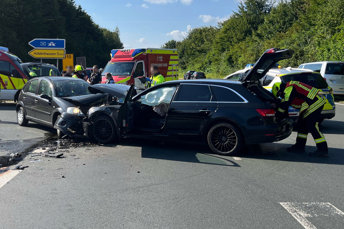 Die Audi-Fahrerin, sowie ihre beiden Kinder (1 und 3 Jahre) wurden durch den Zusammenstoß leicht verletzt und zur ambulanten Behandlung in ein Herforder Krankenhaus gebracht. Die Bünderin blieb durch Unfall unverletzt. Beide Fahrzeuge wurden durch den Unfall so stark beschädigt, dass sie von der Unfallstelle abgeschleppt werden mussten. Der Sachschaden wird auf ca. 15.000 Euro geschätzt