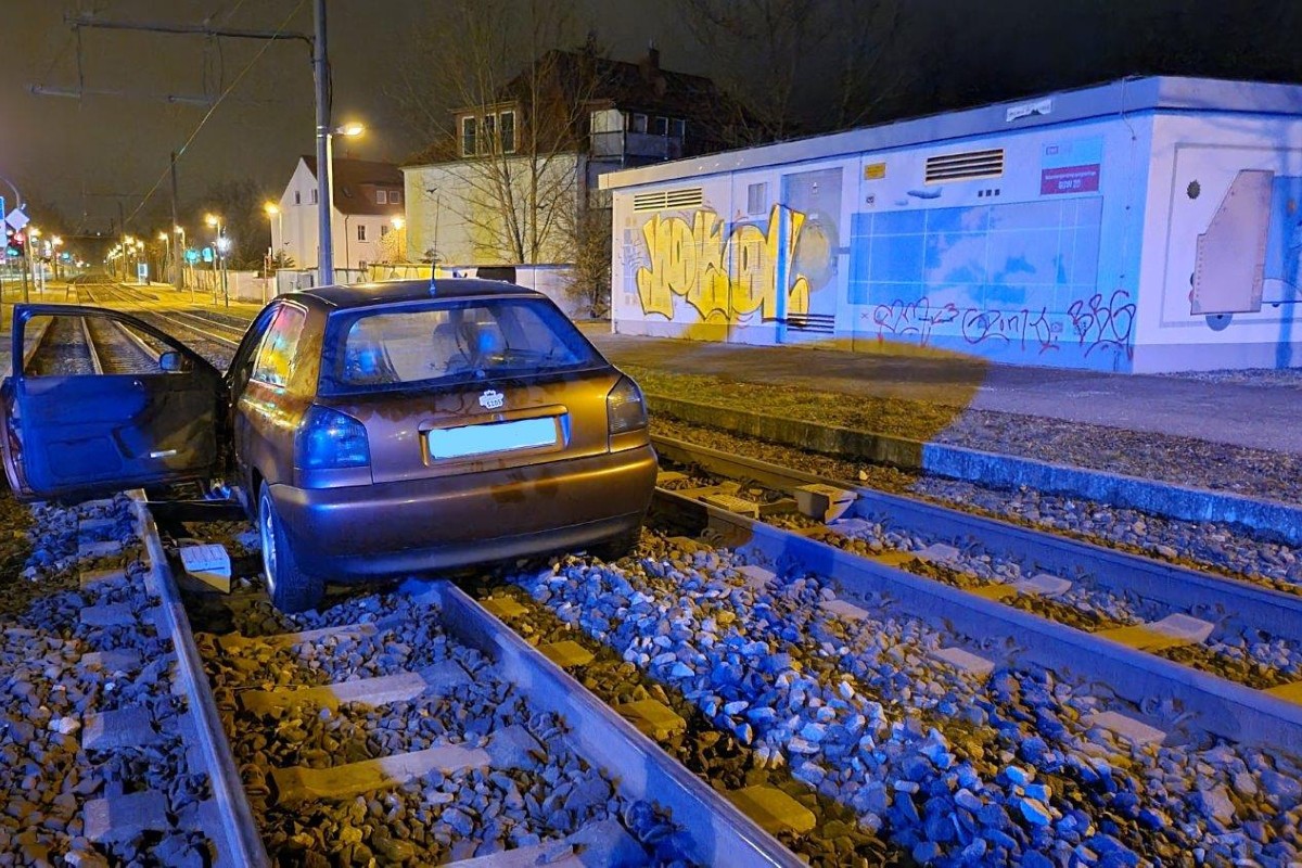 In der Nacht von Freitag auf Samstag landete eine 35-jährige Audi-Fahrerin im Gleisbett der Straßenbahn.
