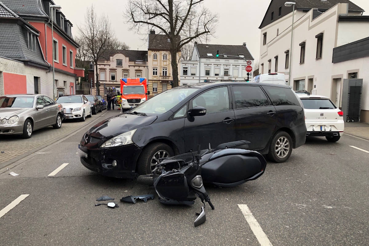 In der Odilienstraße kam es gestern Nachmittag (16.03.2022, 17.15 Uhr) zu einem Zusammenstoß zwischen einem Pkw und einem Roller. Zwei Personen wurden dabei verletzt.