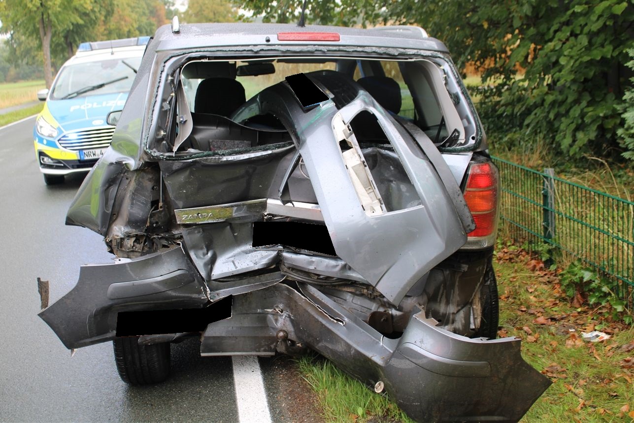 Im Zuge der Unfallaufnahme konnten die Einsatzkräfte folgendes Unfallgeschehen ermitteln. Demnach befuhr gegen 13.20 Uhr ein Espelkamper mit seinem Opel Zafira die Alsweder Straße in Richtung Espelkamp. In Höh der Kniestraße wollte er nach links auf einen Wirtschaftsweg abbiegen. Aufgrund des Gegenverkehrs musste der 65-Jährige anhalten. Der hinter ihm fahrende VW-Fahrer (19) erkannte die Situation zu spät und versuchte noch nach links auszuweichen. Dies gelang aber nicht mehr, sodass der junge Fahrer aus Epelkamp in das Heck des Opels auffuhr.