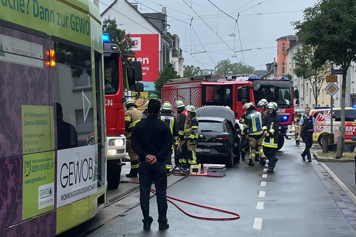 Heute Mittag, 01.07.2023, musste die Feuerwehr Essen zu einem Verkehrsunfall zwischen einer Straßenbahn und einem PKW ausrücken.