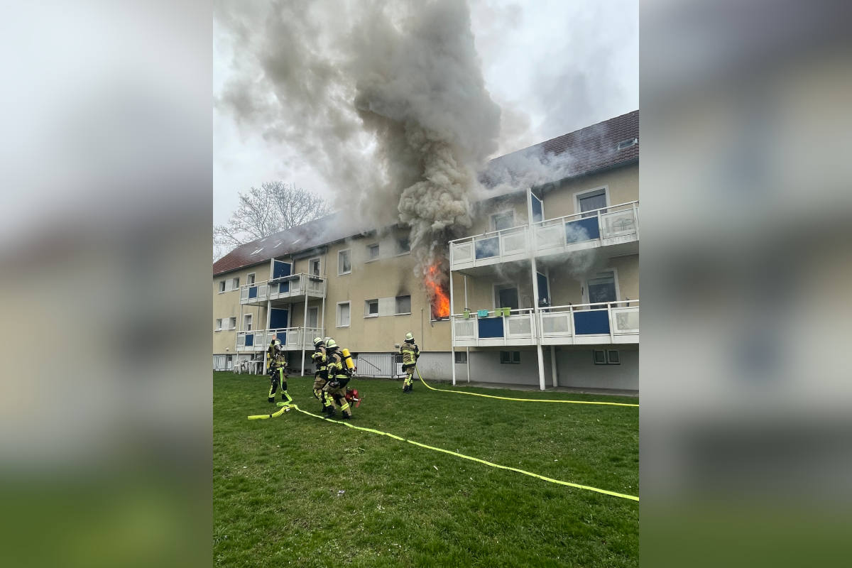 Bei einem Brand in einem Mehrfamilienhaus wurde ein Bewohner gerettet. Die Flammen schlugen bereits aus einem geborstenen Fenster, als die Einsatzkräfte eintrafen.
