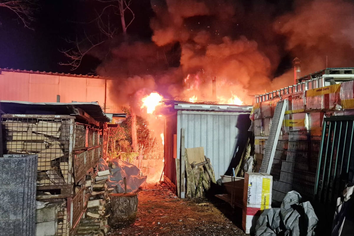 Die ersten Kräfte sahen einen Überseecontainer, in einem Areal von Lagerflächen verschiedener Handwerksbetriebe, der in Vollbrand stand. Die Flammen hatten bereits auf den hölzernen Carport, unter dem sich der Container sowie weitere Container befanden, übergegriffen. In dem Überseecontainer waren neben kleineren Maschinen auch drei Propangasflaschen gelagert, die von der Feuerwehr aus dem Gefahrenbereich gebracht wurden. Ein Firmenfahrzeug, dessen Plane bereits von den Flammen erfasst worden war, konnte vom Eigentümer noch gerettet werden.