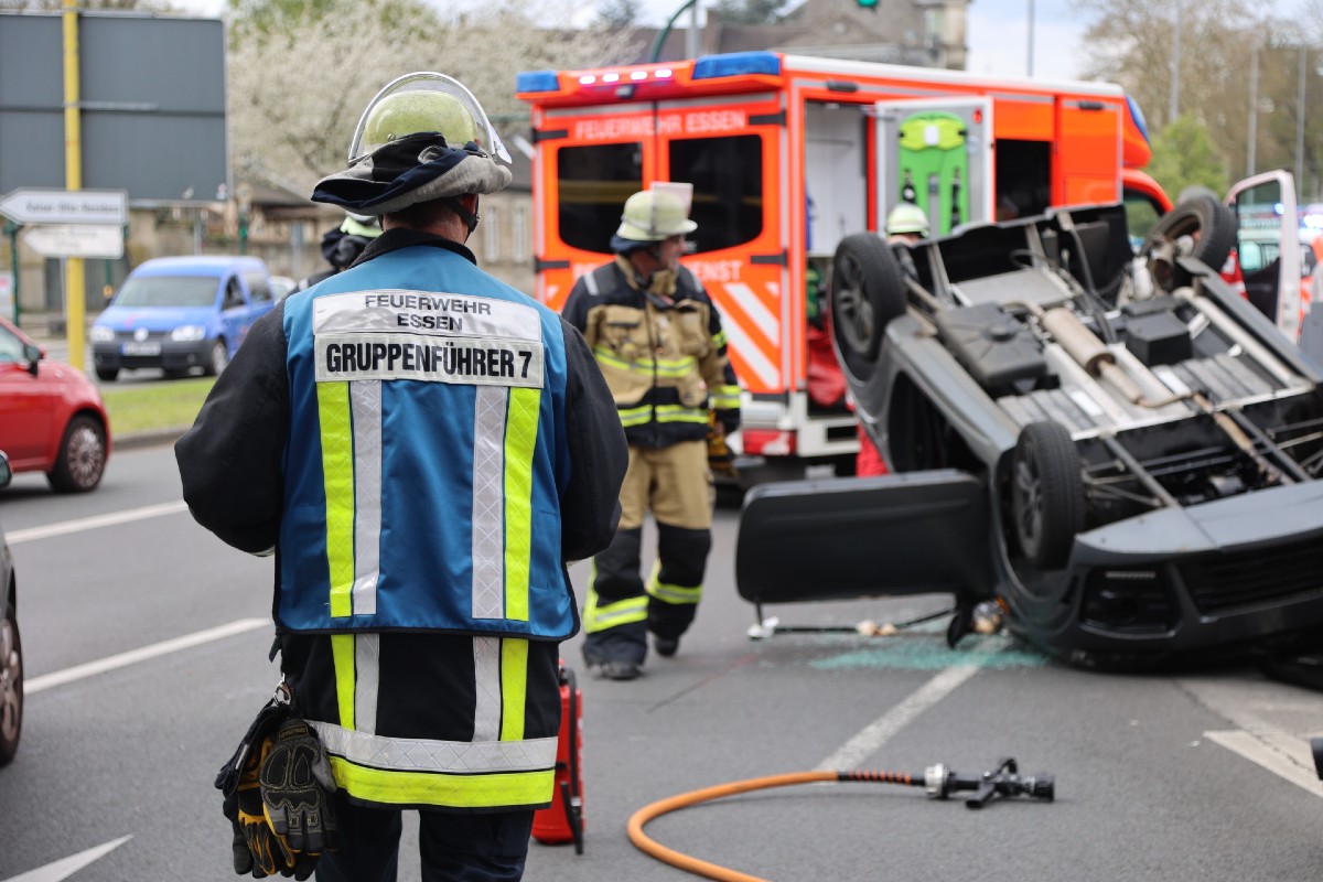 Am Donnerstag, 20.04.2023, ereignete sich ein Verkehrsunfall in Essen-Steele. Ein Leichtkraftfahrzeug landete infolgedessen auf dem Dach und die zwei Insassen wurden schwer verletzt.