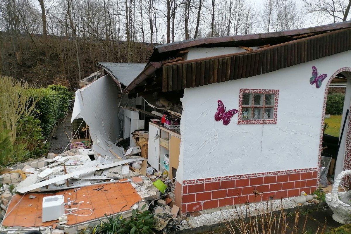Die Rückwand der gemauerten Laube war durch den Druck zerstört. Glasscherben waren im Umkreis von rund 20 Metern verteilt. Die Eingangstür der etwa 20 Quadratmeter großen Laube war ebenfalls aus der Verankerung gedrückt. Anhand von angesengten Gardinen muss die Druckwelle mit einer Stichflamme einhergegangen sein. Umgehend wurde das Umfeld nach weiteren Personen durchsucht, glücklicherweise befand sich niemand mehr in der Parzelle. Drei Gasflaschen konnten aus den Trümmern geborgen werden. Der Patient wurde mit Verbrennungen unter Notarztbegleitung in ein Krankenhaus transportiert. Wie es zu der Verpuffung kam, ist unklar. Die Feuerwehr Essen war mit einem Rettungswagen, einem Notarzteinsatzfahrzeug sowie einem Löschfahrzeug für rund eine Stunde im Einsatz.