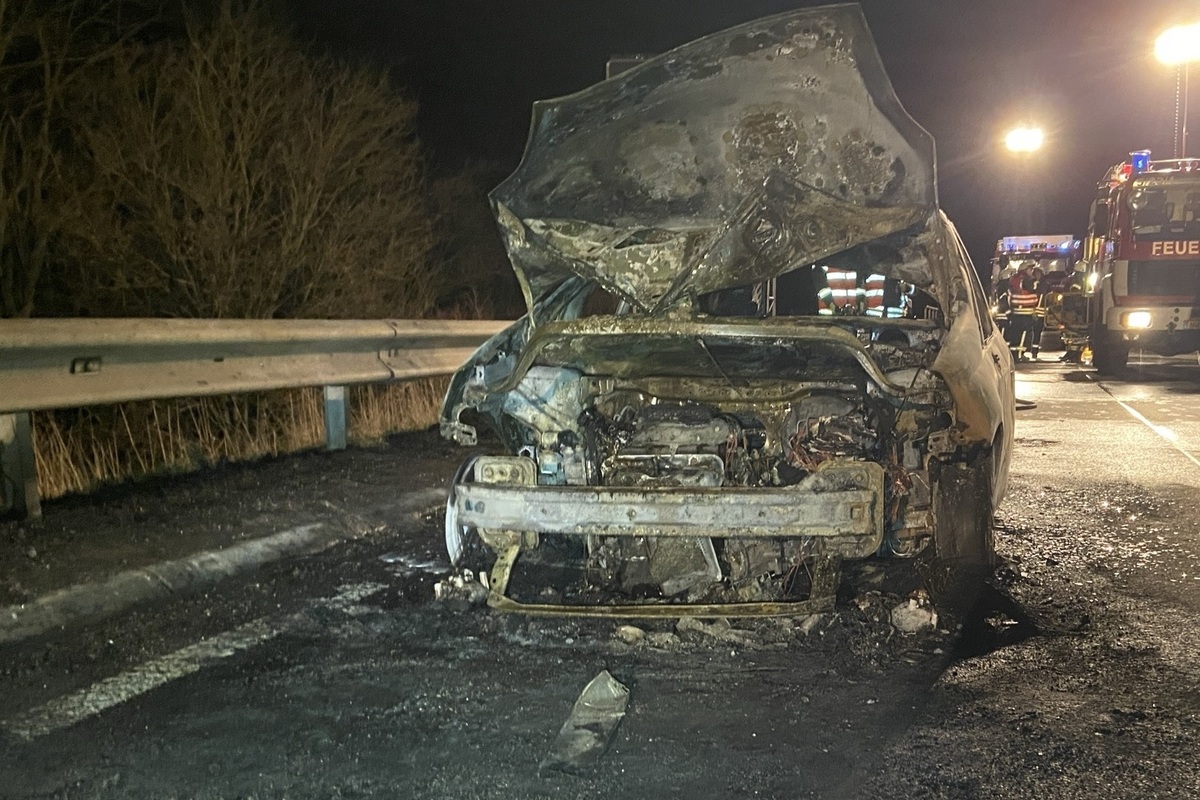Während der Fahrt bemerkten die Insassen, dass sich im Motorbereich auf der Beifahrerseite Qualm bildete. Der 21 Jahre alte Fahrer aus Ludwigshafen konnte den PKW am rechten Fahrbahnrand zum Stehen bringen und mit den übrigen Insassen das Fahrzeug unverletzt verlassen. Wenige Minuten später brannte das Fahrzeug bereits lichterloh. Durch die Feuerwehr aus Neustadt/ Wstr. die mit 4 Einsatzfahrzeugen und 25 Kräften vor Ort waren, wurde der Brand zügig gelöscht, so dass das Feuer nicht auf die Böschung übergreifen konnte.