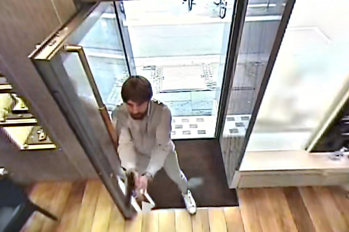 Täter 1 klingelt an der Tür des Juweliers. (Bildquelle: Polizeipräsidium Frankfurt am Main)