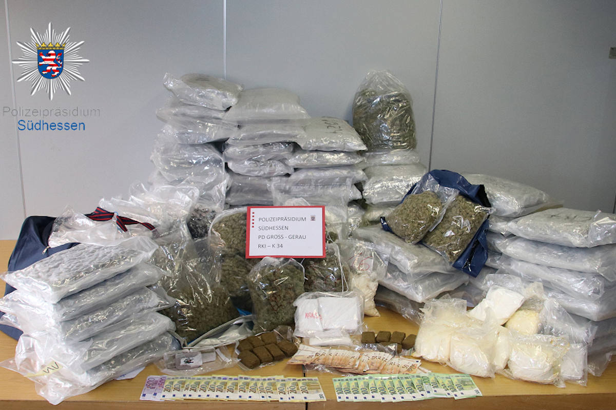 Im Rahmen eines seit geraumer Zeit aufwendig und intensiv geführten Ermittlungsverfahrens der Staatsanwaltschaft Darmstadt und des Rüsselsheimer Rauschgiftkommissariat K 34, unterstützt von Beamten der Zentralkommissariate 42 und 43 des Polizeipräsidiums Südhessen, wegen des Verdachts des illegalen Handels mit Betäubungsmitteln in nicht geringen Mengen, durchsuchten die Ermittler in der vergangenen Woche und darauffolgenden Tagen Wohnungen und Räumlichkeiten von fünf Männern und einer Frau im Alter zwischen 22 und 54 Jahren in Mörfelden-Walldorf, Rüsselsheim, Dreieich und Frankfurt.