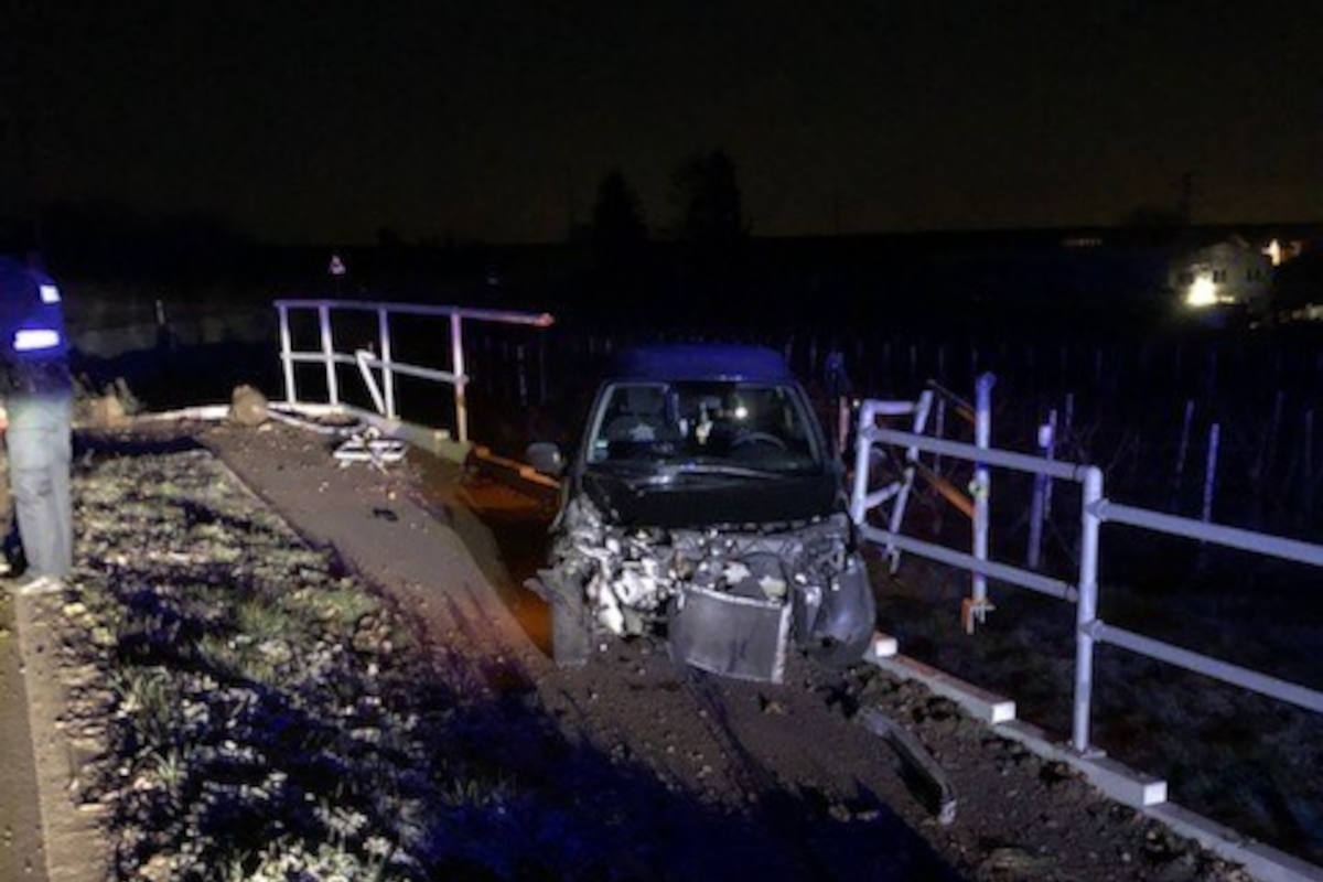 Der 33-Jährige befuhr kurz vor 01:00 Uhr die K 53 von Nußdorf in Richtung Frankweiler. In einer Linkskurve verlor der 33-jährige Fahrer aus bisher ungeklärter Ursache die Kontrolle über sein Fahrzeug und kam nach links von der Fahrbahn ab, wo er mit einem Geländer kollidierte. Bei der Unfallaufnahme konnte bei dem 33-jährigen Fahrer ein Atemalkoholwert von 2,30 Promille festgestellt werden, sodass eine Blutentnahme angeordnet wurde. Bei der Verbringung zur Dienststelle klagte der 33-jährige Fahrer über zunehmende Schmerzen, sodass er aufgrund seines kritischen Gesundheitszustandes zur weiteren ärztlichen Untersuchung in ein Krankenhaus verbracht wurde.