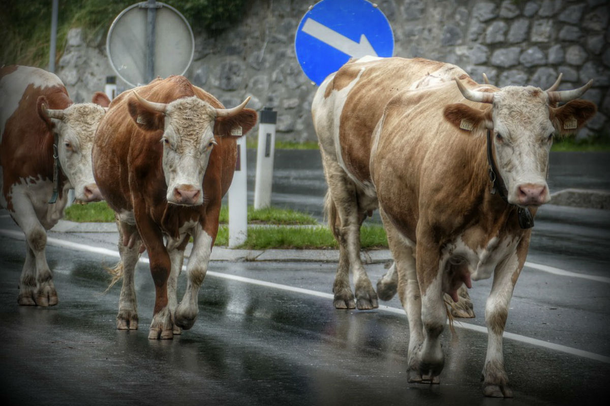 Mehrere freilaufende Kühe haben im Feierabendverkehr im Bereich der Krefelder Strasse in Aachen, Höhe der Anschlussstelle AS Aachen Zentrum, die Polizei beschäftigt.