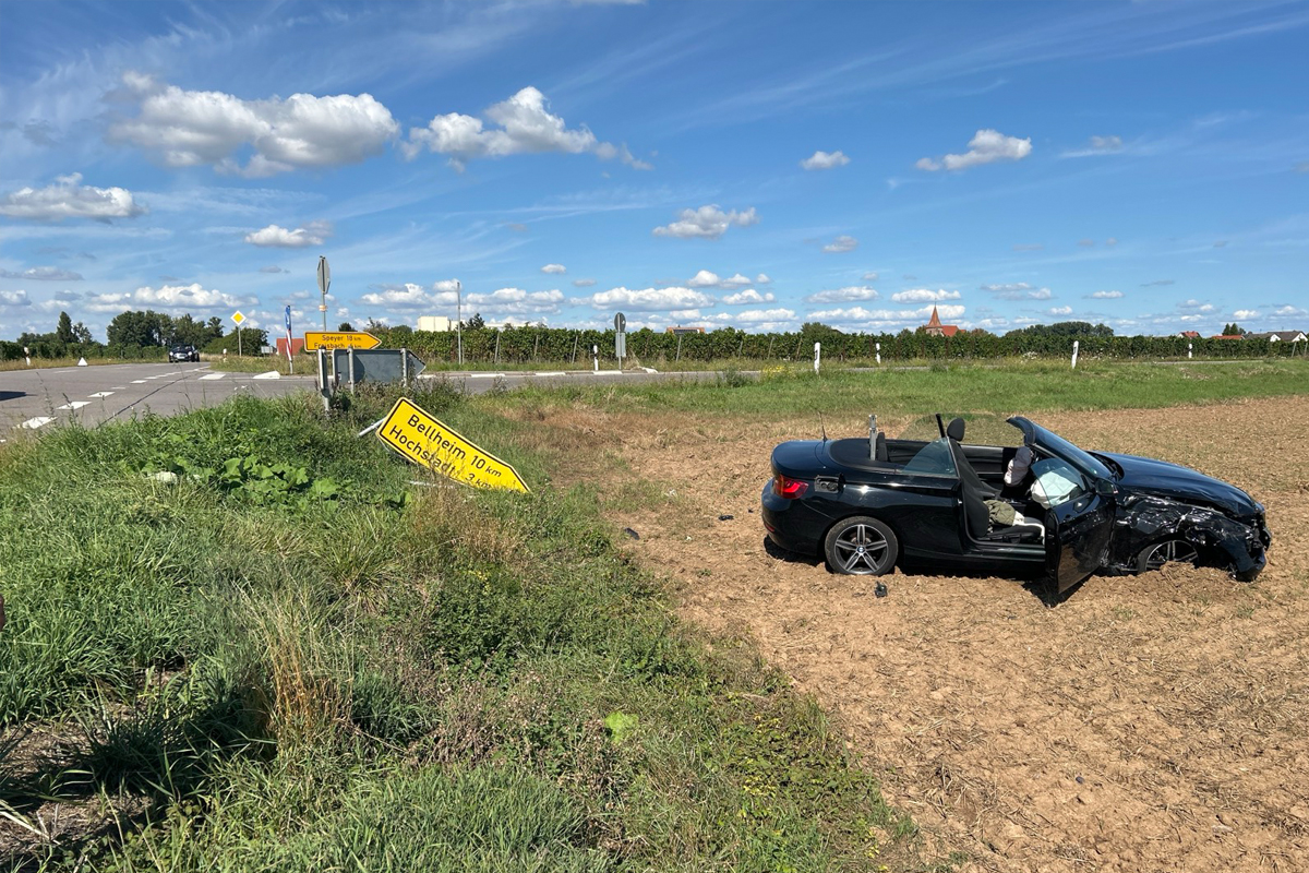 Bei einem Unfall an der Kreuzung L507/L540 in Freimersheim kollidierten am Samstag (06.09.2025) zwei Autos. Eine 70-jährige Fahrerin übersah beim Queren der Kreuzung eine bevorrechtigte BMW-Fahrerin. Beide Frauen wurden verletzt.