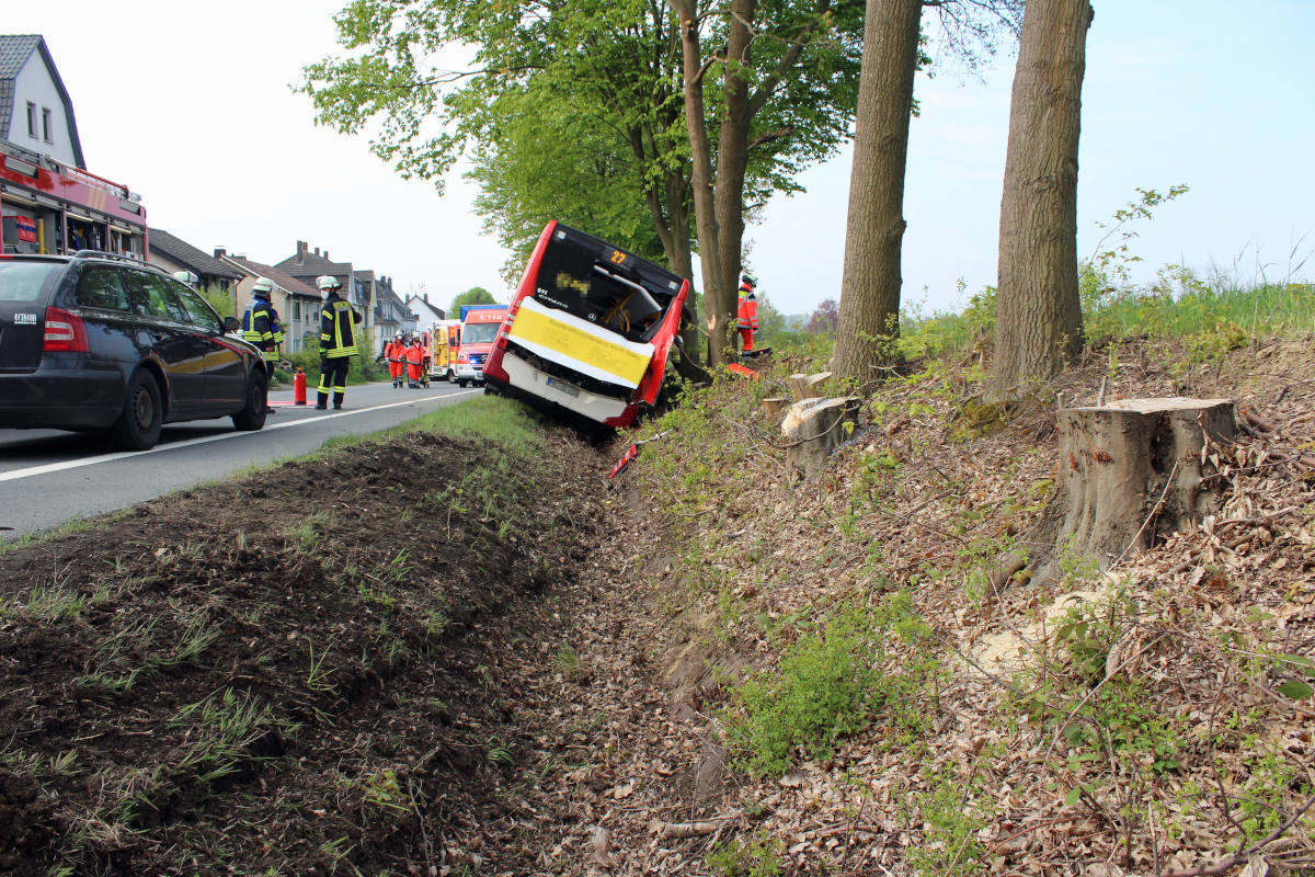 Drei Schwerverletzte bei Verkehrsunfall eines Linienbusses in Fröndenberg (Bildquelle: Kreispolizeibehörde Unna)