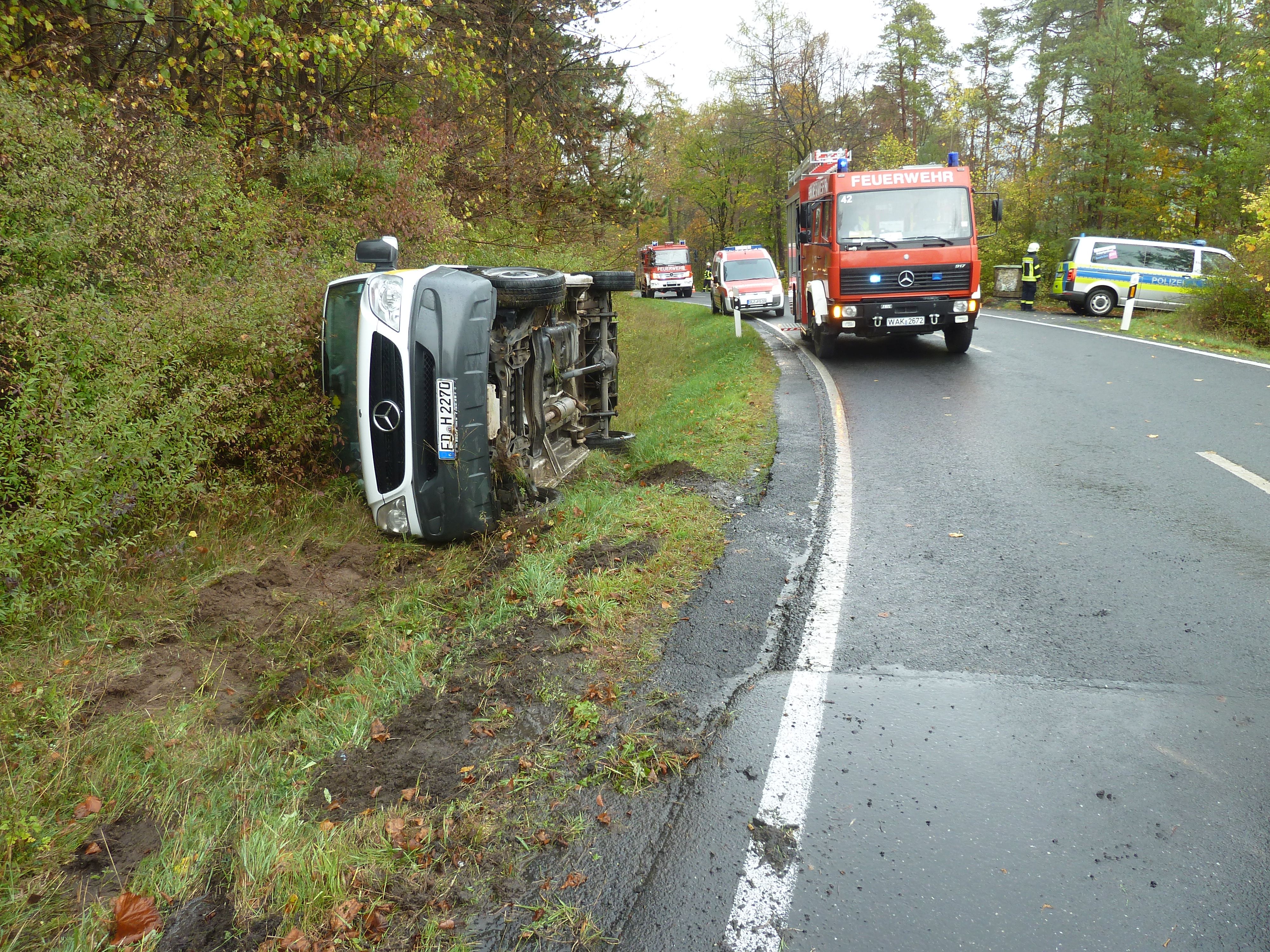 Bei regennasser Fahrbahn ereignete sich am Freitagnachmittag auf der Landstraße von Geisa in Richtung Point Alpha ein Verkehrsunfall mit Personenschaden.