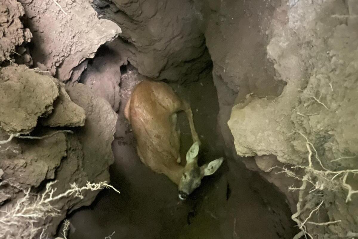 Am 25.07.2023 ist ein Reh in eine Grube gefallen. Die Feuerwehr konnte das Tier unverletzt retten.