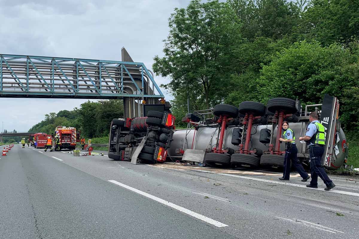 Gladbeck - LKW mit Gefahrstoffladung kippt auf der Autobahn!