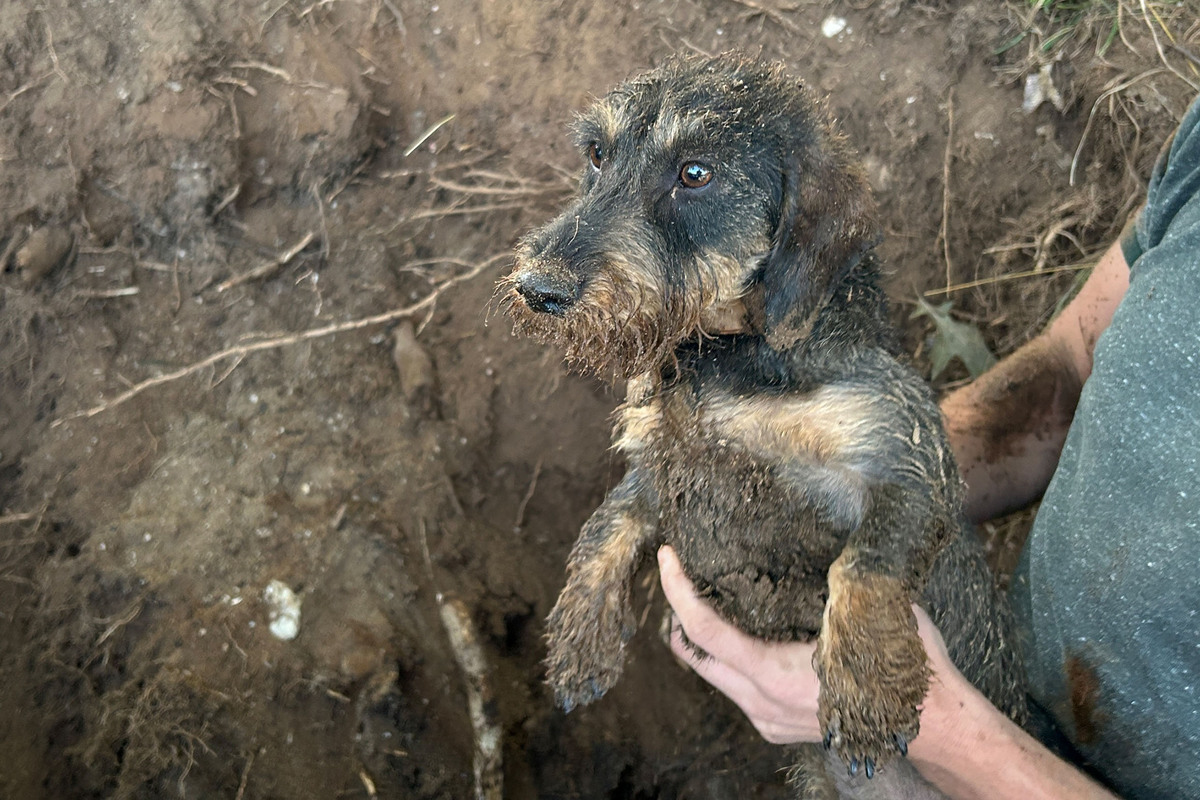 Die Feuerwehr hat heute, 12.07.2023, einen Rauhaardackel aus einem Nutria-Bau befreit.
