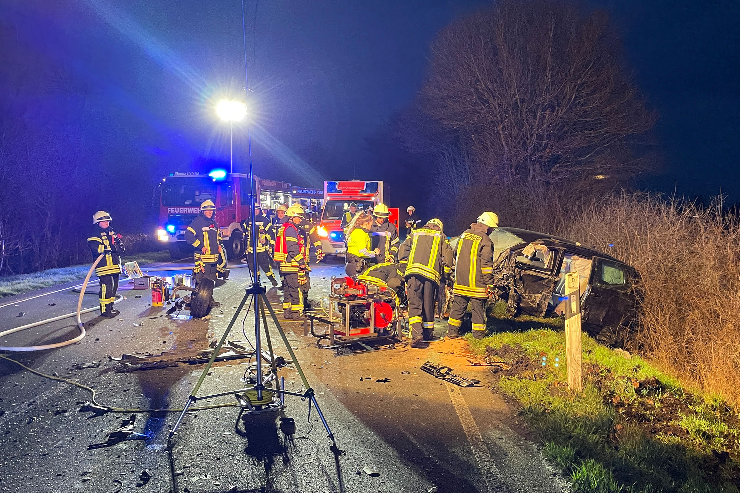 46-jähriger Autofahrer verstirbt nach schwerem Verkehrsunfall (Bildquelle: Freiwillige Feuerwehr der Stadt Goch)