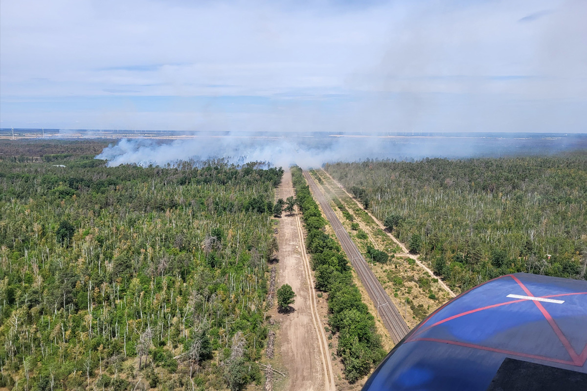 Seit 1. Juli 2025 unterstützte der Bundespolizei-Flugdienst bei verschiedenen Waldbränden die Bundesländer Brandenburg (Treuenbrietzen, Jüterbog), Sachsen (Gohrischheide) und Thüringen (Saalfelder Höhen) bei der Vegetations- und Waldbrandbekämpfung auf Ersuchen der jeweiligen Bundesländer.