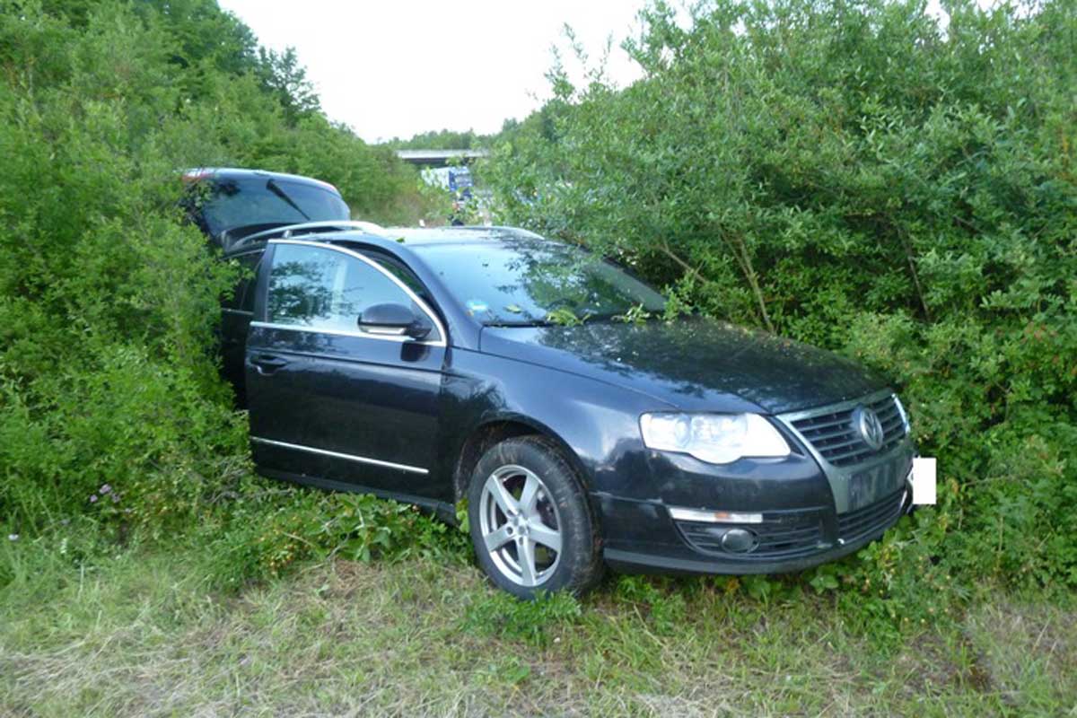 PKW des 71-Jährigen in der Hecke in Göllheim (Bildquelle: Verkehrsdirektion Mainz)