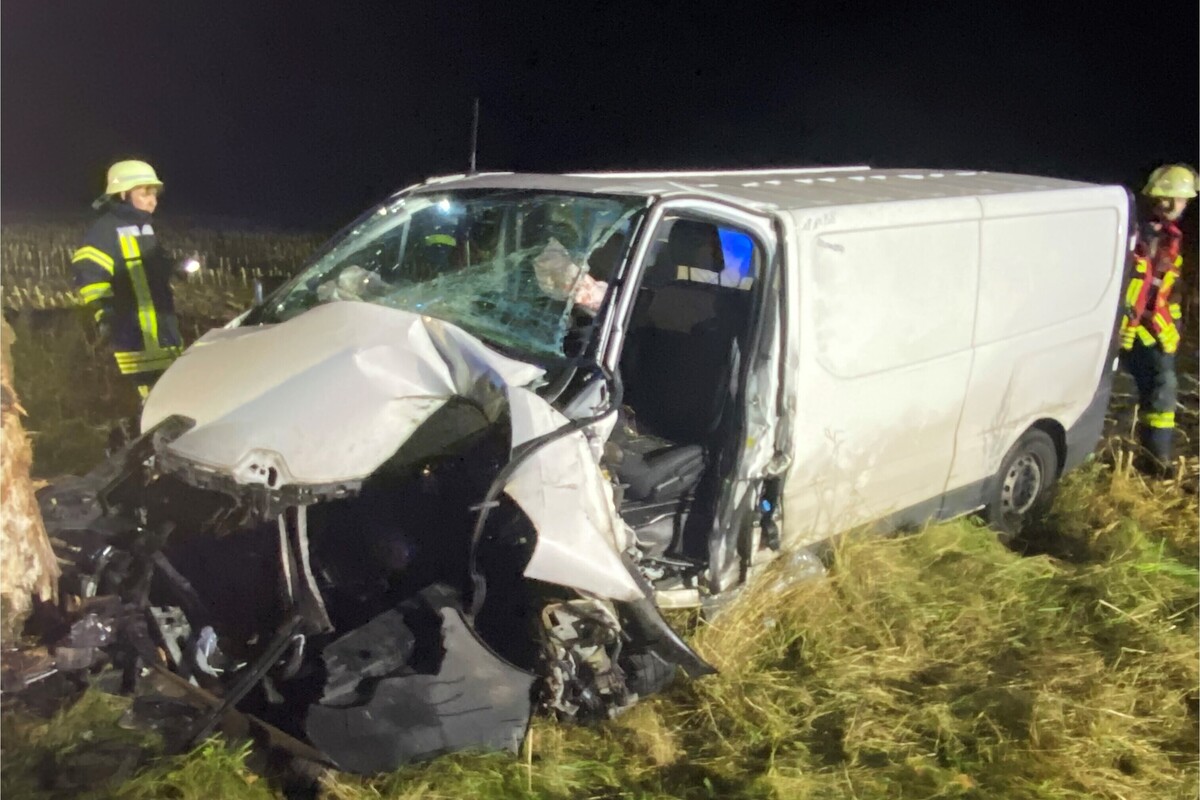 Der Mann war gegen 23.30 Uhr mit seinem Kleintransporter auf der Kreisstraße in Richtung Rockstedt unterwegs, als sein Fahrzeug aus noch ungeklärter Ursache nach rechts von der Fahrbahn abkam. Im Seitenraum kollidierte der Renault frontal mit einem Straßenbaum und schleuderte von dort auf ein anliegendes Feld. Einsatzkräfte der Feuerwehren aus Selsingen, Lavenstedt, Rhade und Zeven mussten den eingeklemmten Fahrer aus dem Fahrzeug befreien.