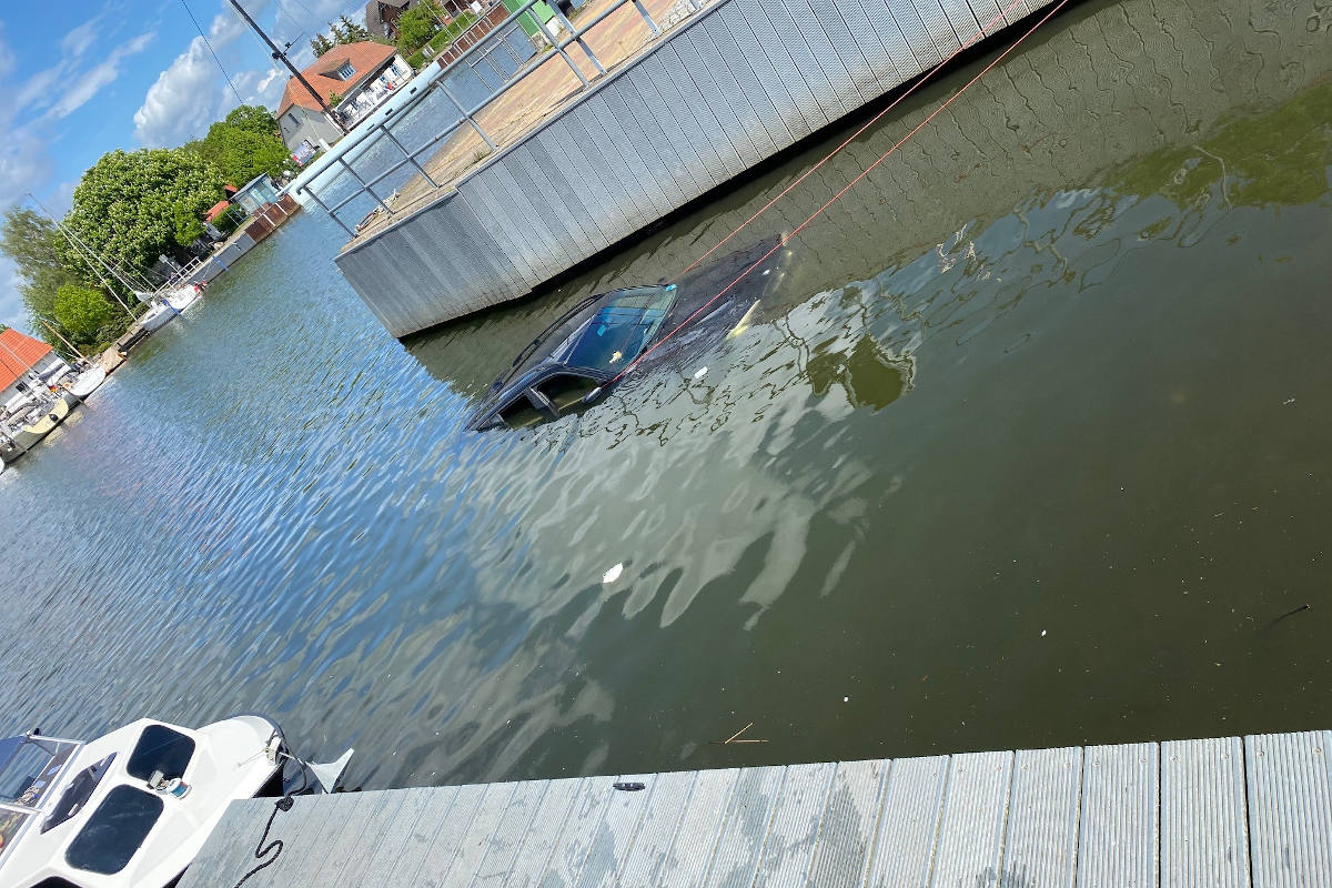 Beim Slippen mittels eines Bootstrailers rutschte der PKW aus bisher unbekannter Ursache zusammen mit dem Bootstrailer rückwärts ins Wasser und geriet dabei bis zu den Seitenspiegeln unter Wasser. Erst die durch die Rettungsleitstelle Vorpommern-Greifswald alarmierte Berufsfeuerwehr Greifswald, mit insgesamt zwölf Kameraden, konnte den PKW aus dem Wasser bergen. Es wird bei dem PKW von einem wirtschaftlichen Totalschaden ausgegangen, das Sportboot blieb unversehrt. Bei dem Vorfall wurden keine Personen verletzt.