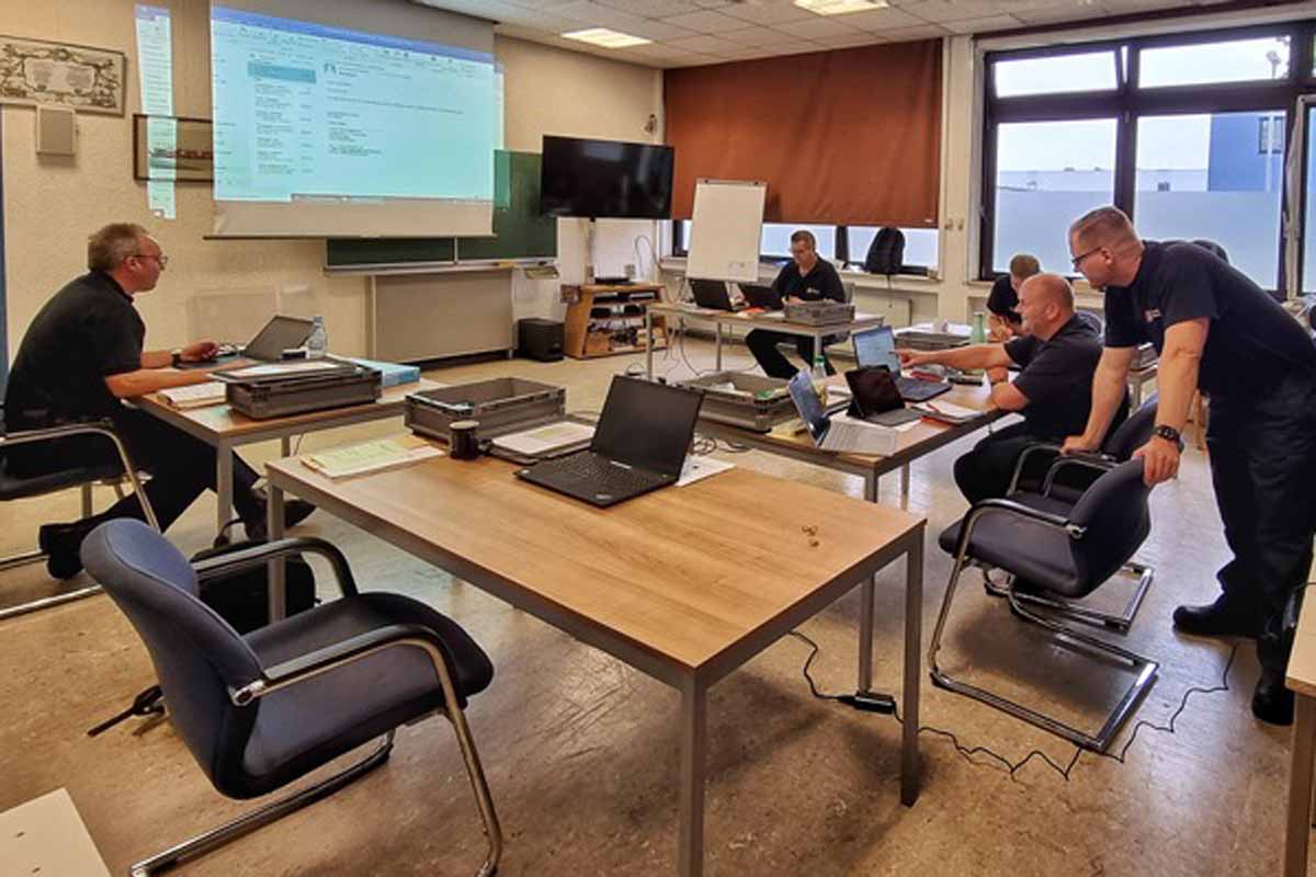 Aus dem Lageraum der Grevenbroicher Feuerwehr werden die Einsätze der Haupt- und Ehrenamtlichen Kräfte der Wehr disponiert (Bildquelle: Feuerwehr Grevenbroich)
