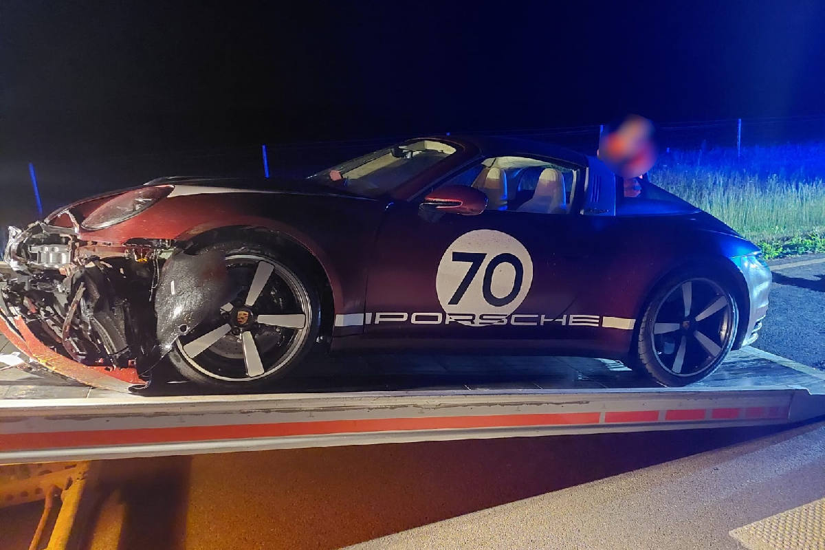 Bei dem Fahrzeug handelt es sich um eine limitierte Edition eines Porsche 911 Targa 4S. Bei dem Unfall wurde dessen Front komplett zerstört und die Frontscheibe ist gebrochen, sodass der entstandene Schaden auf etwa 40.000 Euro geschätzt wird. Der Porsche war nicht mehr fahrbereit und musste durch ein Abschleppunternehmen geborgen werden.