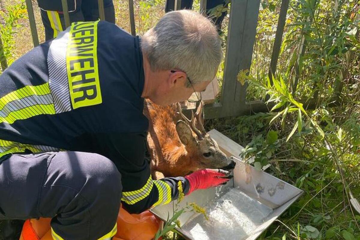 Das Reh bekam zudem etwas zu trinken (Bildquelle: Freiwillige Feuerwehr Celle)